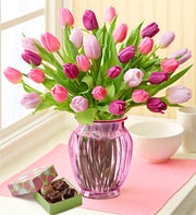 Good Deal: 1-800-FLOWERS.com 30 Tulips + FREE Vase + FREE Chocolates $29.99